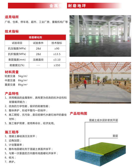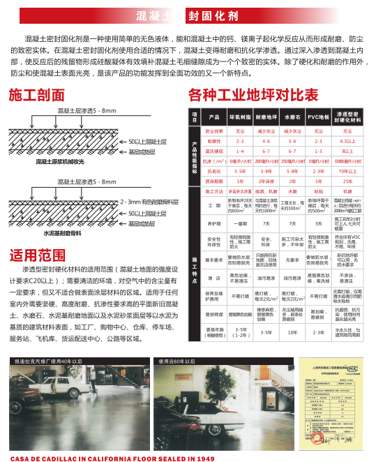根據(jù)不同的使用功能需求、現(xiàn)場施工條件、地域差異等因素,公司主要涉及產(chǎn)品分為:混凝土密封固化劑系列、環(huán)氧樹脂地坪漆涂裝系列、PVC卷材系列、運動球場涂裝系列、停車場交通標(biāo)識系列、巖棉保溫防火復(fù)合板外保溫系列等。